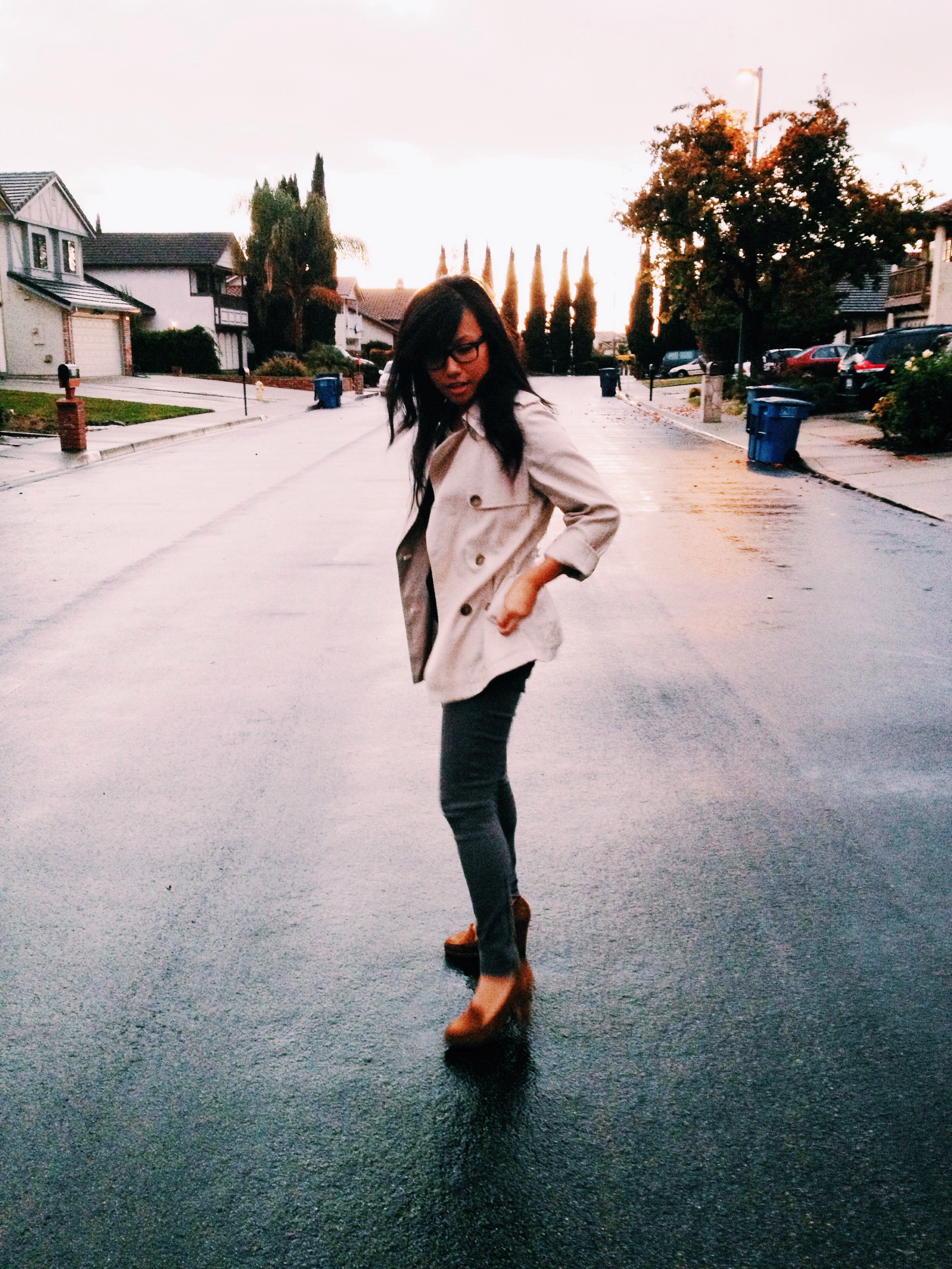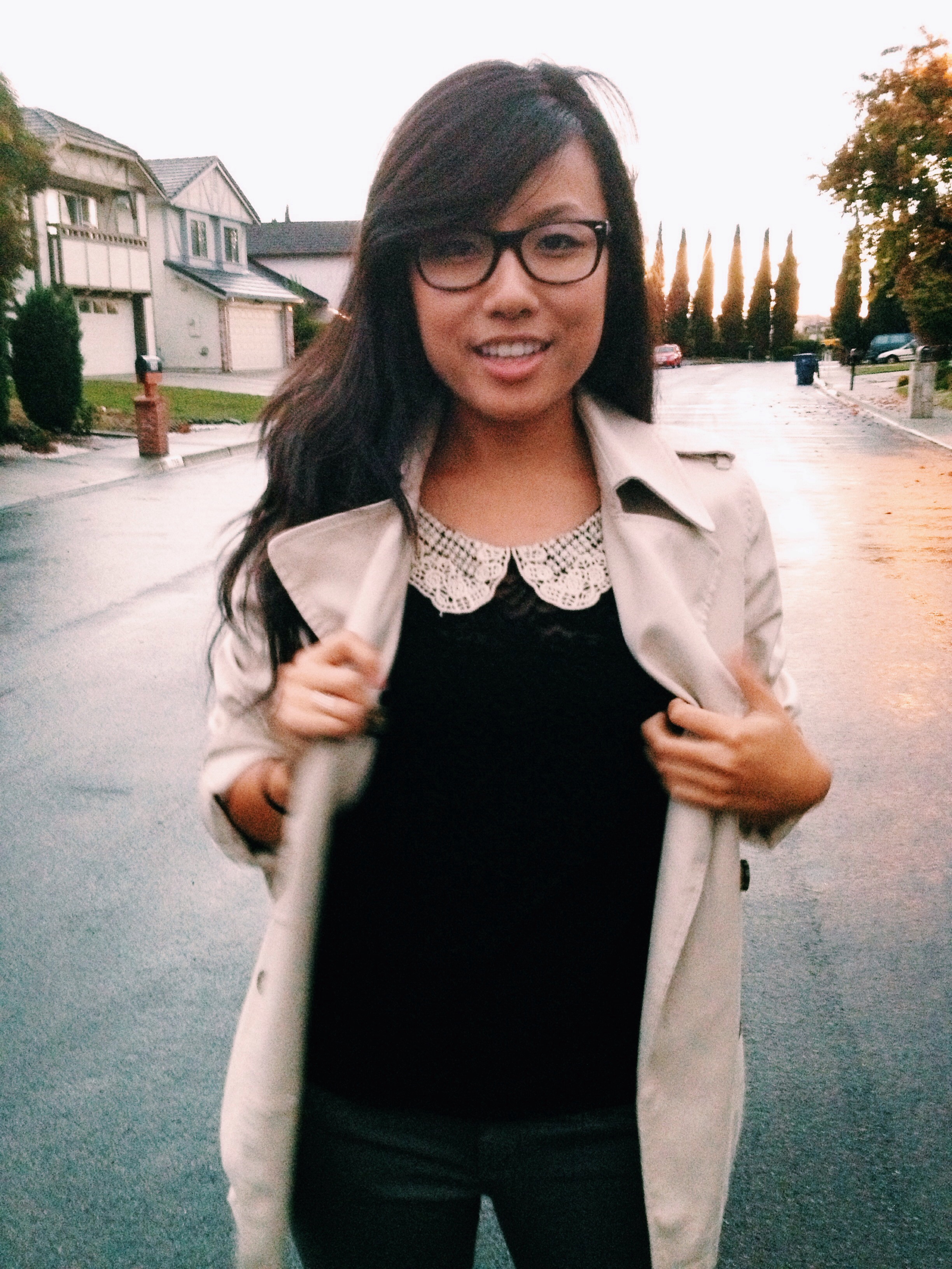 Trench: Thrifted –  Similar // Top: Urban – Similar // Jeans: Gap
