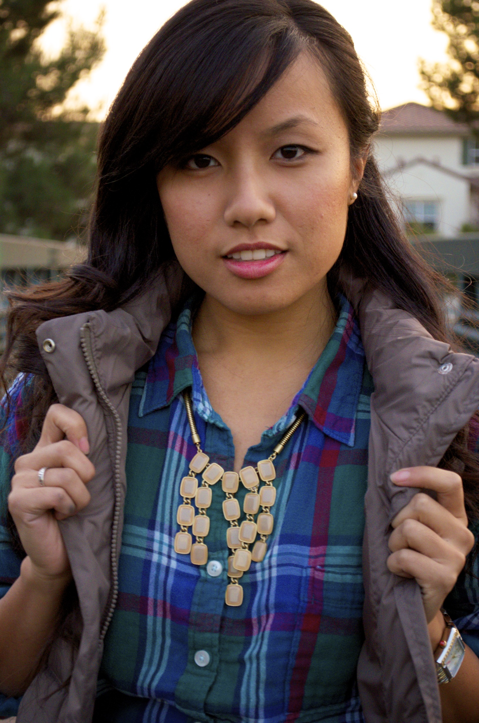Love the plaid with that necklace. Never thought of pairing those two pieces together but it looks great!