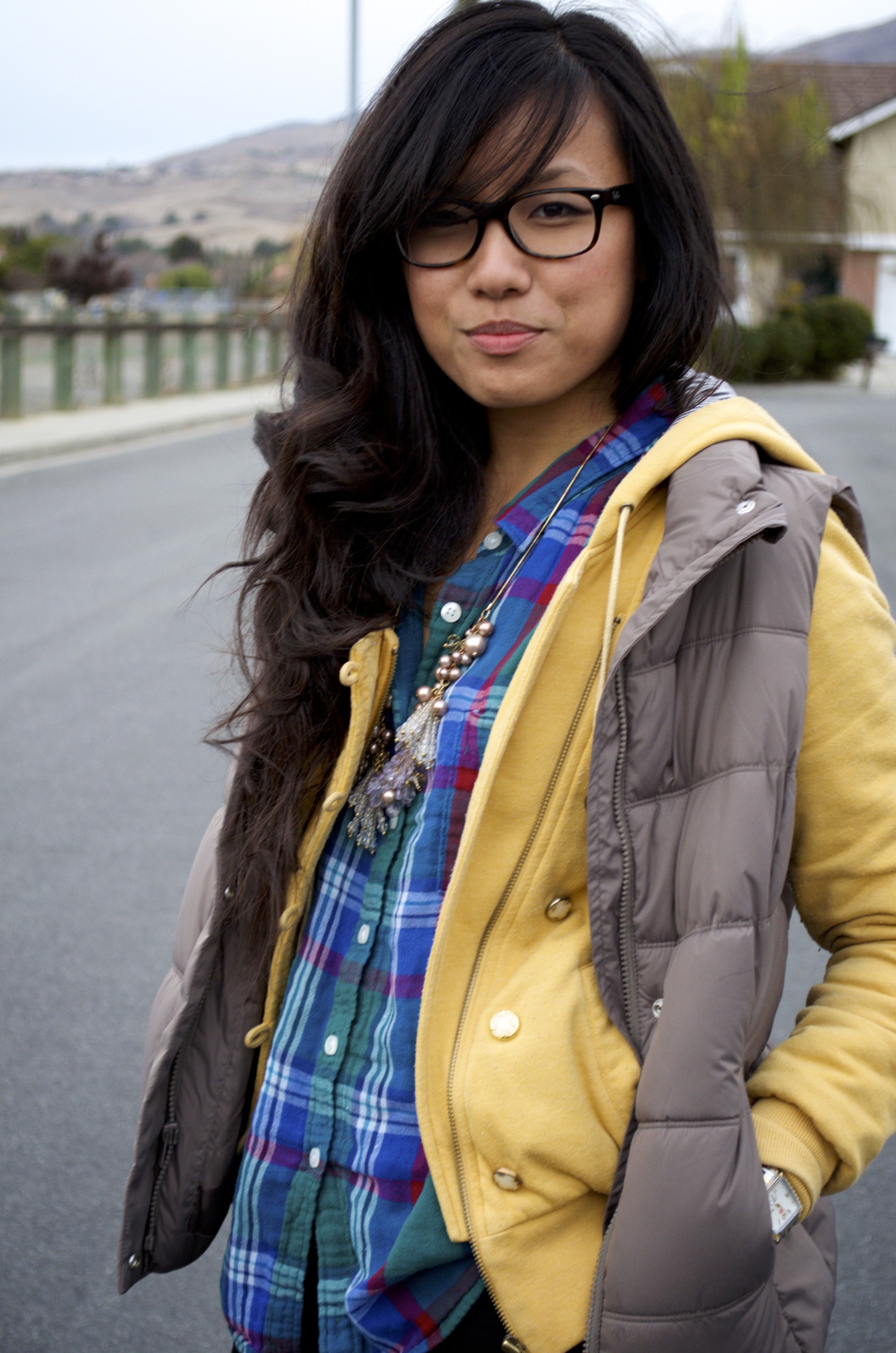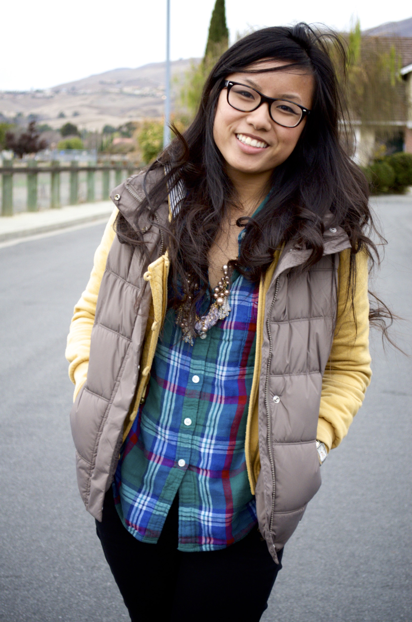 Love these layers!! The puffy vest is absolutely adorable as is the plaid shirt! 🙂
