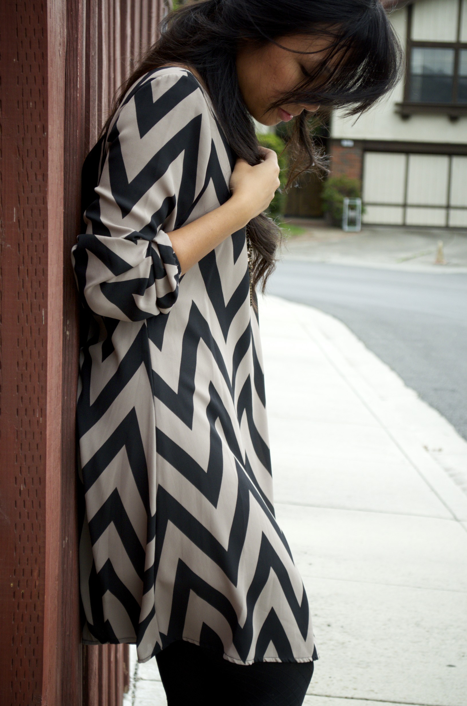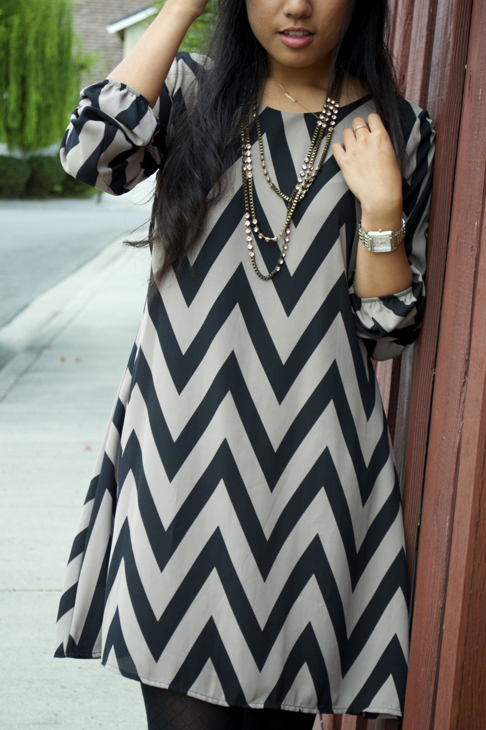 I’m not usually the one to wear an all over pattern, but I’m totally diggin’ this dress. Pin up Darling did it again with the Chevron Bow Back Dress. The shift-style shape paired with the long sleeves and soft fabric makes this dress my go to dress because it really does not need much and the bold pattern says it all. ๐Ÿ™‚