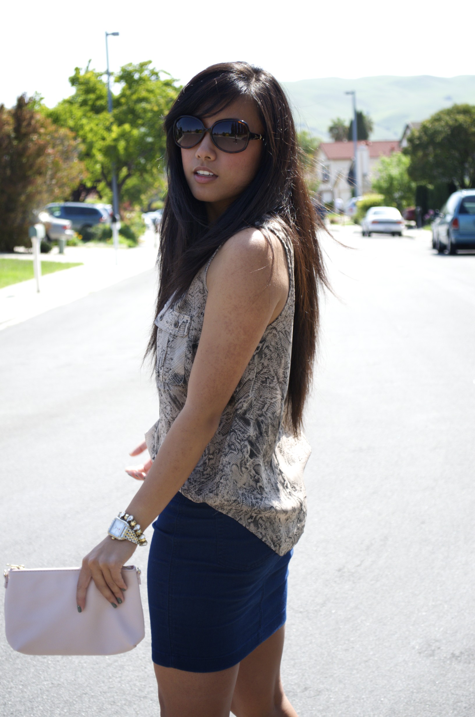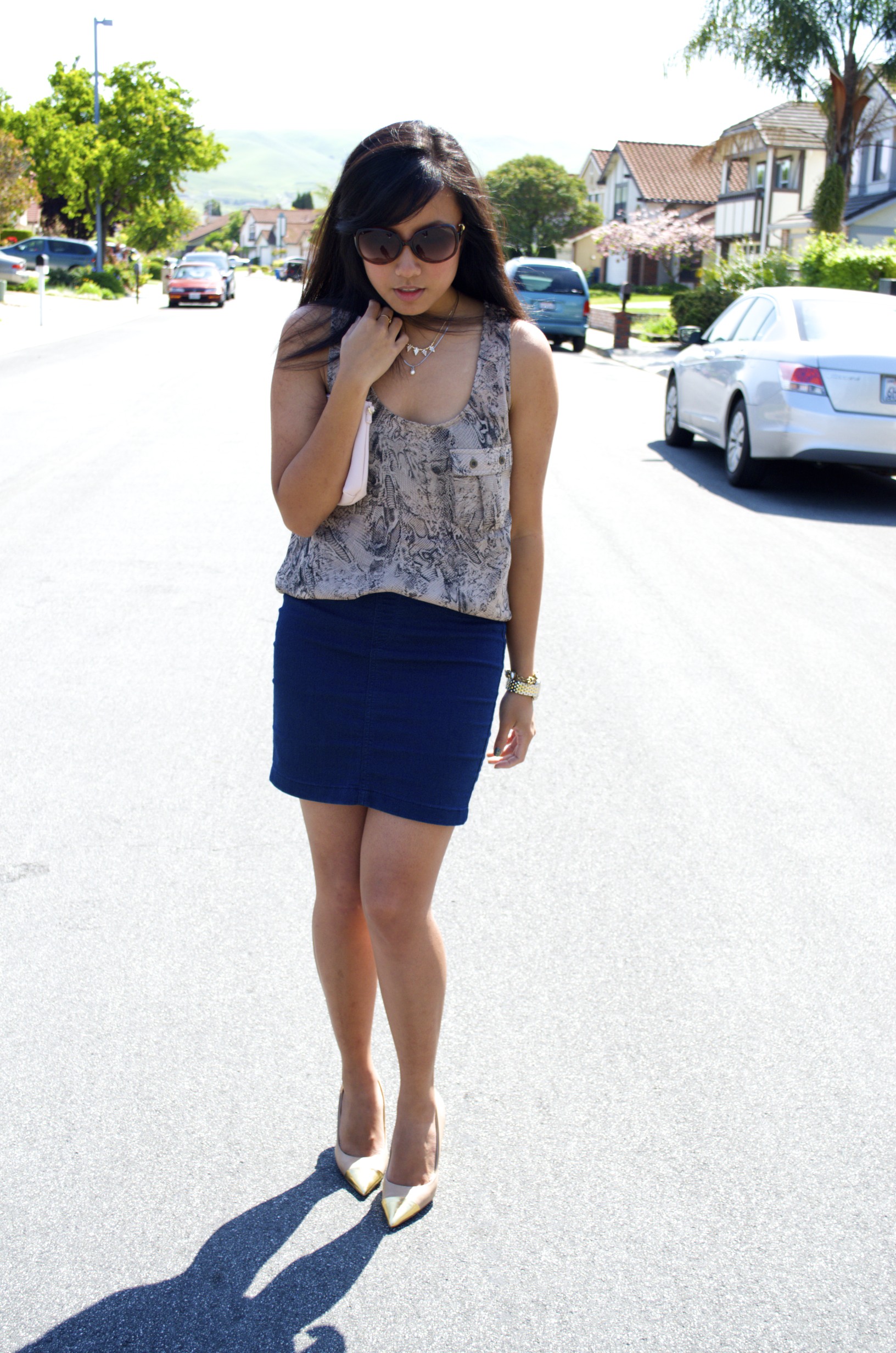 1. I agree, snakeskin can be tricky. I usually go for very girly but I just bought some very neutral snakeskin heels that I’m obsessed with. I’m lovin’ that skirt and your flawless accessories!