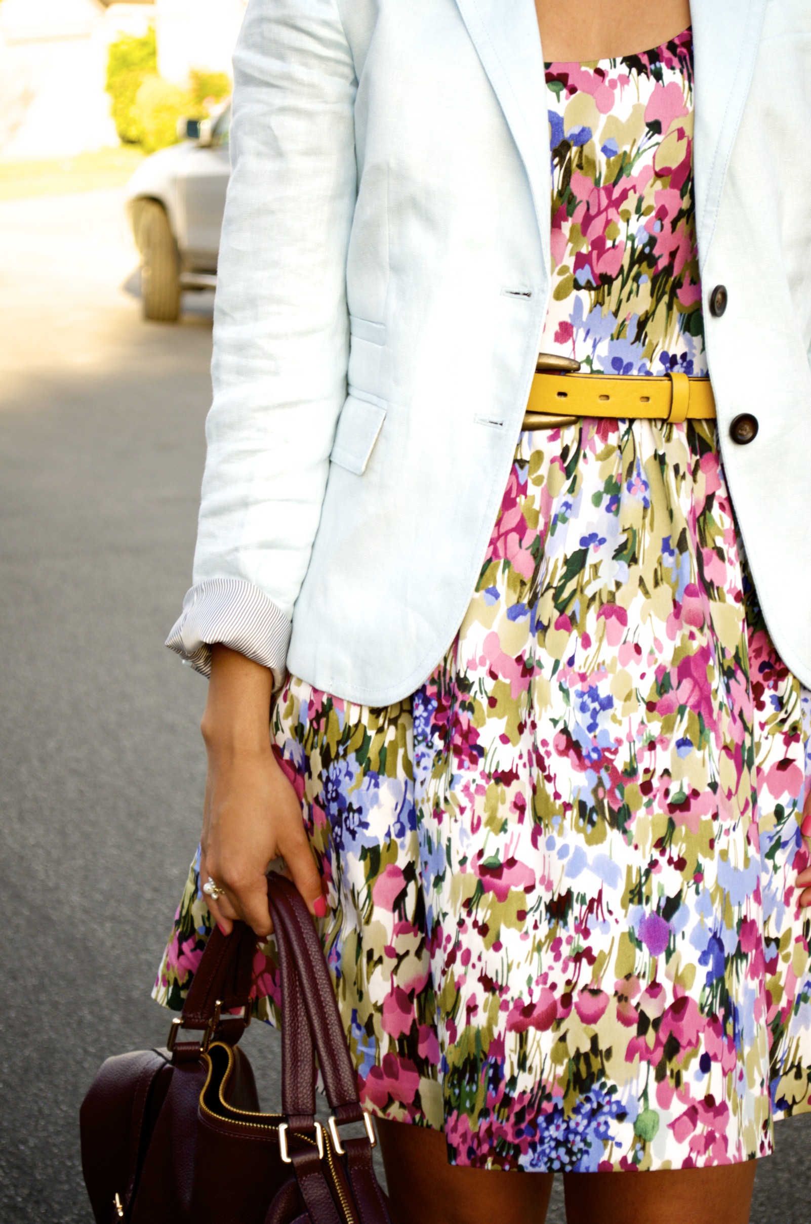 Such a pretty dress Alex! If I wear that to work, blazer or not, I think it will just instantly put me in a good mood, all day long!:)