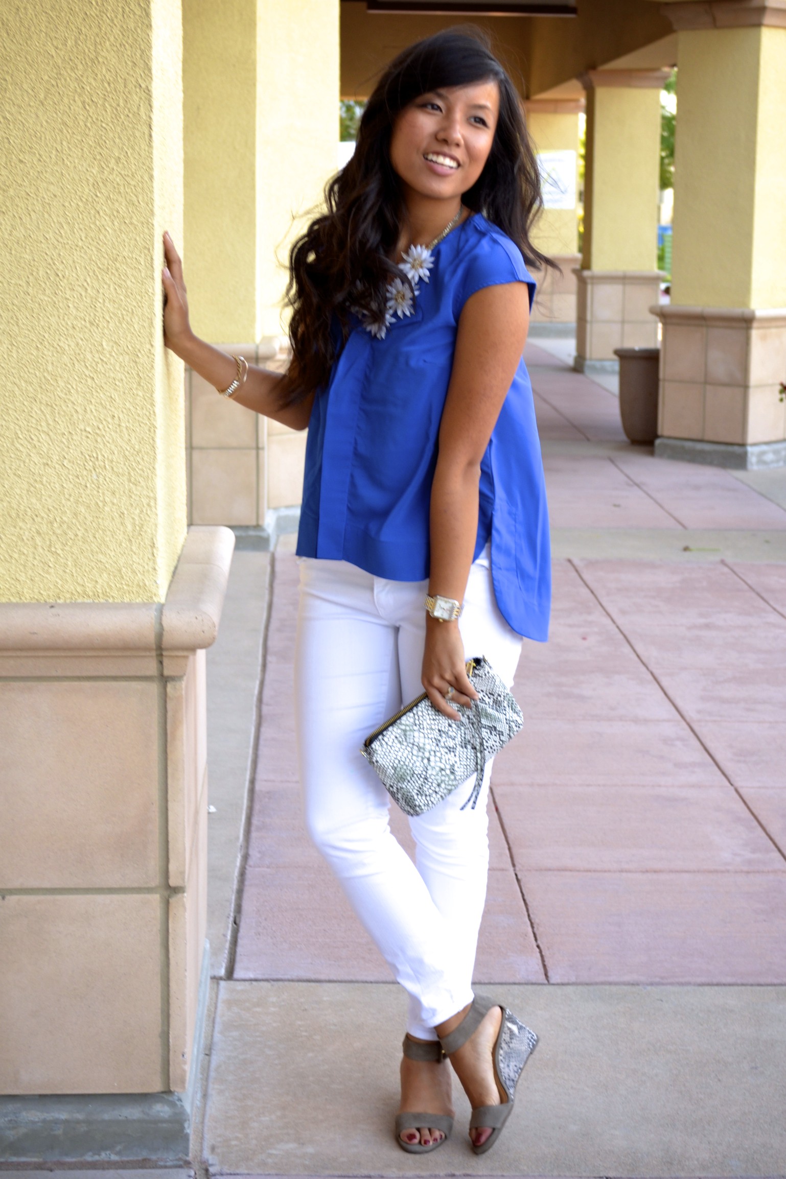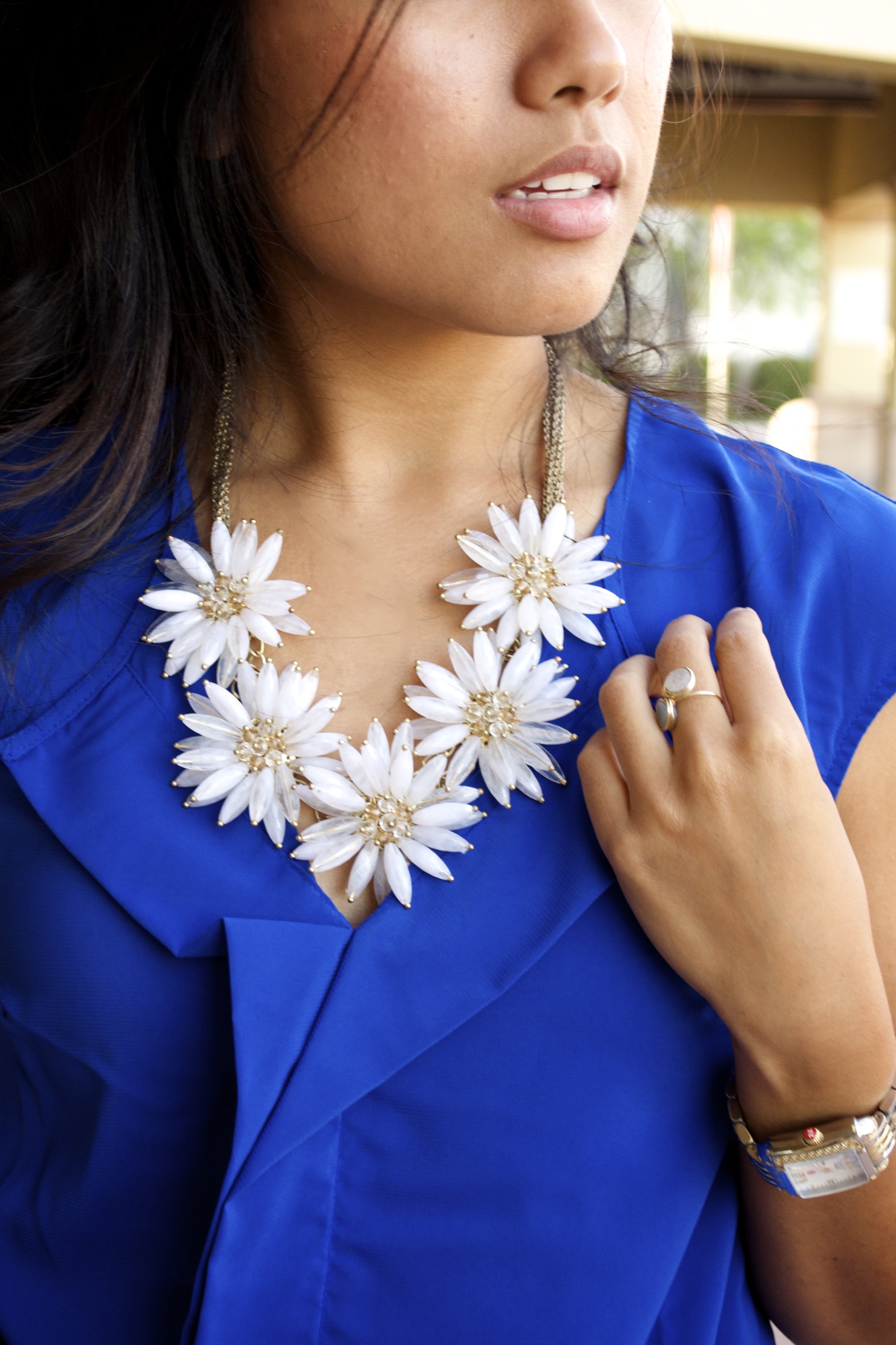 You my dear look stunning in this outfit!! I love that cobalt blue top on you and that necklace is to die for! Just gorgeous!
