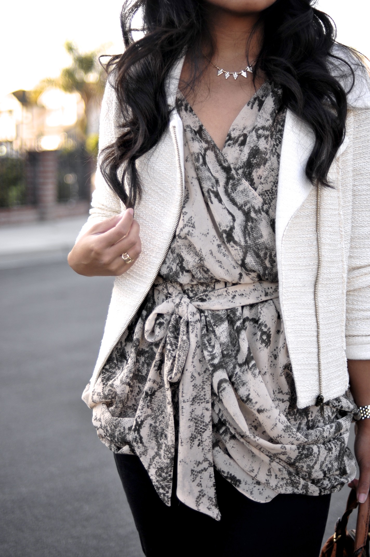 This particular dress had a slim fitting thin layer underneath with the patterned chiffon layered over and so it was easy to fold the bottom under. When choosing a dress to wear as a top, make sure that the bottom half of the dress is more snug (sort of like a body con dress) so that if you fold it, it can just sit on top of your hips. It’s just an option.