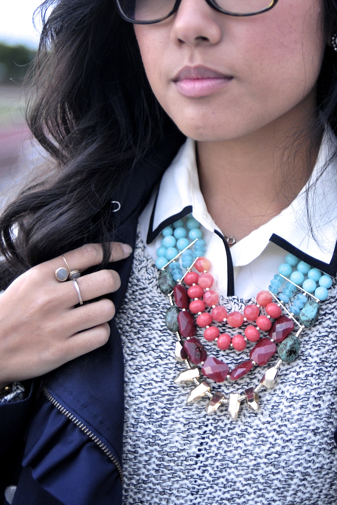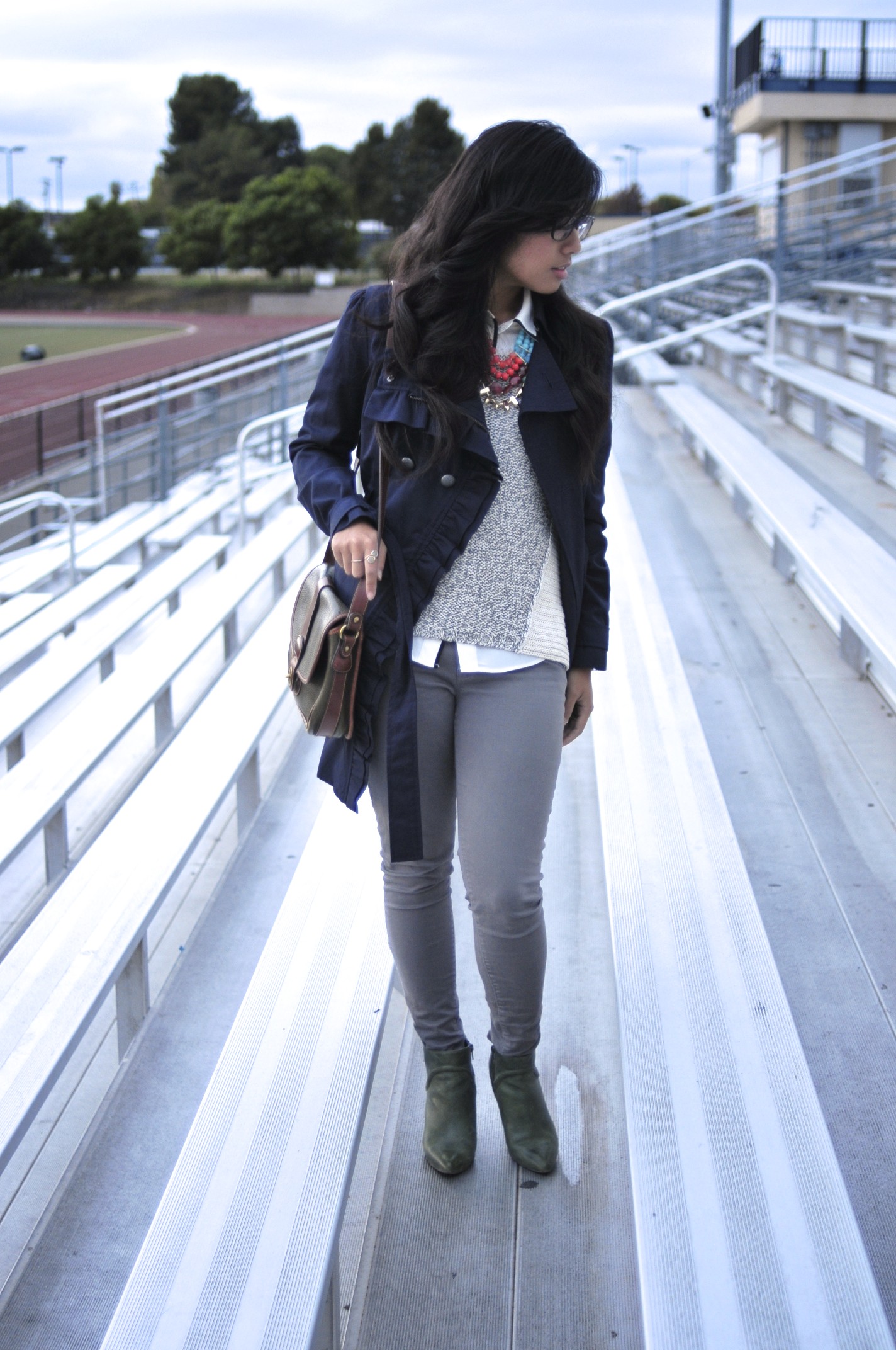 Trench: Anthropologie – Similar // Pants: Gap – Similar  // Sweater: via StitchFix // Blouse: Talbots – Similar // Purse: Coach Vintage // Booties: Anthropologie – Similar // Necklace: Anthropologie – {sale for only $20!} // Ring: c/o Wrenn Jewelry