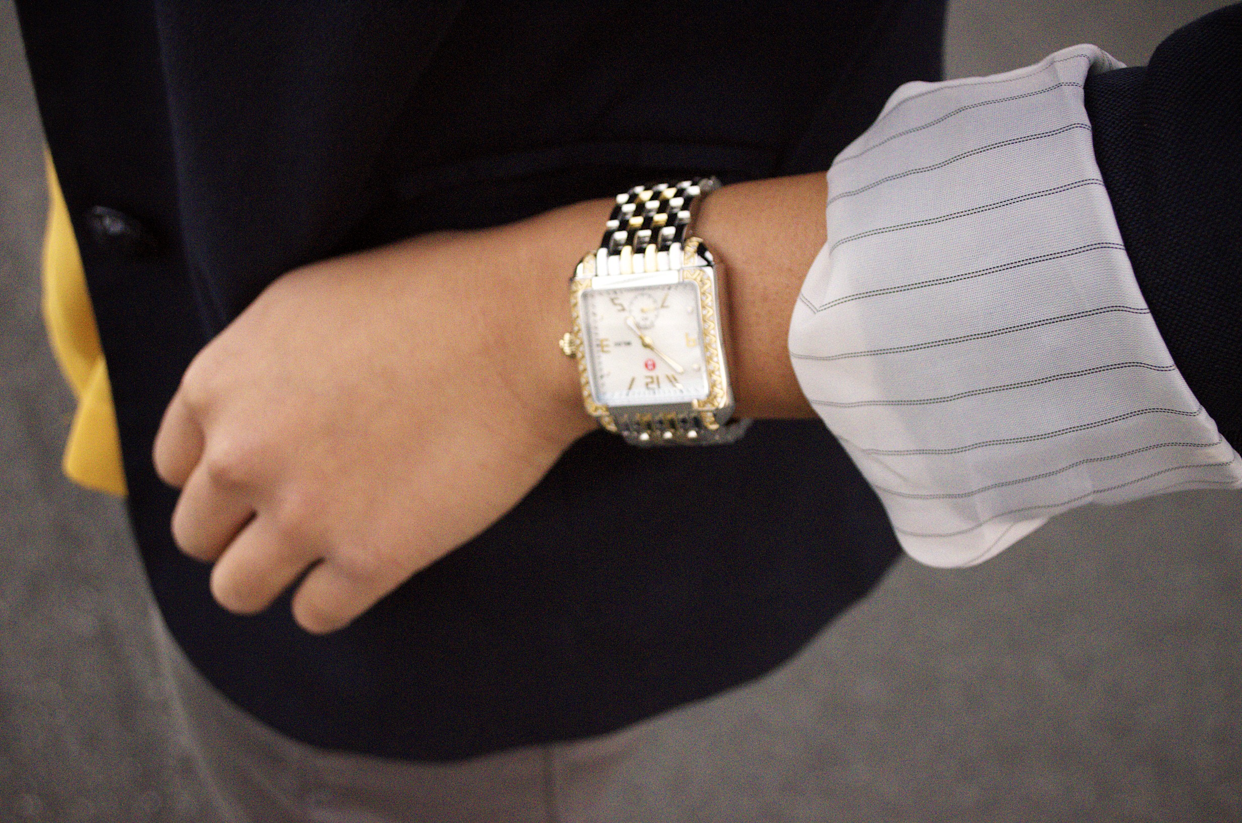 THE WATCH: Now, I’ve been on the look out for good watch for awhile. I had no idea what to look for until I talked to my fashionable-in-the-know cousins. Their tip: TWO-TONE. Get a two-toned (both gold and silver) watch and band so that it can match with every outfit no matter what. Yes, this was definitely a splurge, but so worth it! It’s functional as well as a stylish accessory! You will probably see me wear this guy every post. 🙂 I got this watch at Nordstrom Rack. Be on the look out, because these are hard to find!
