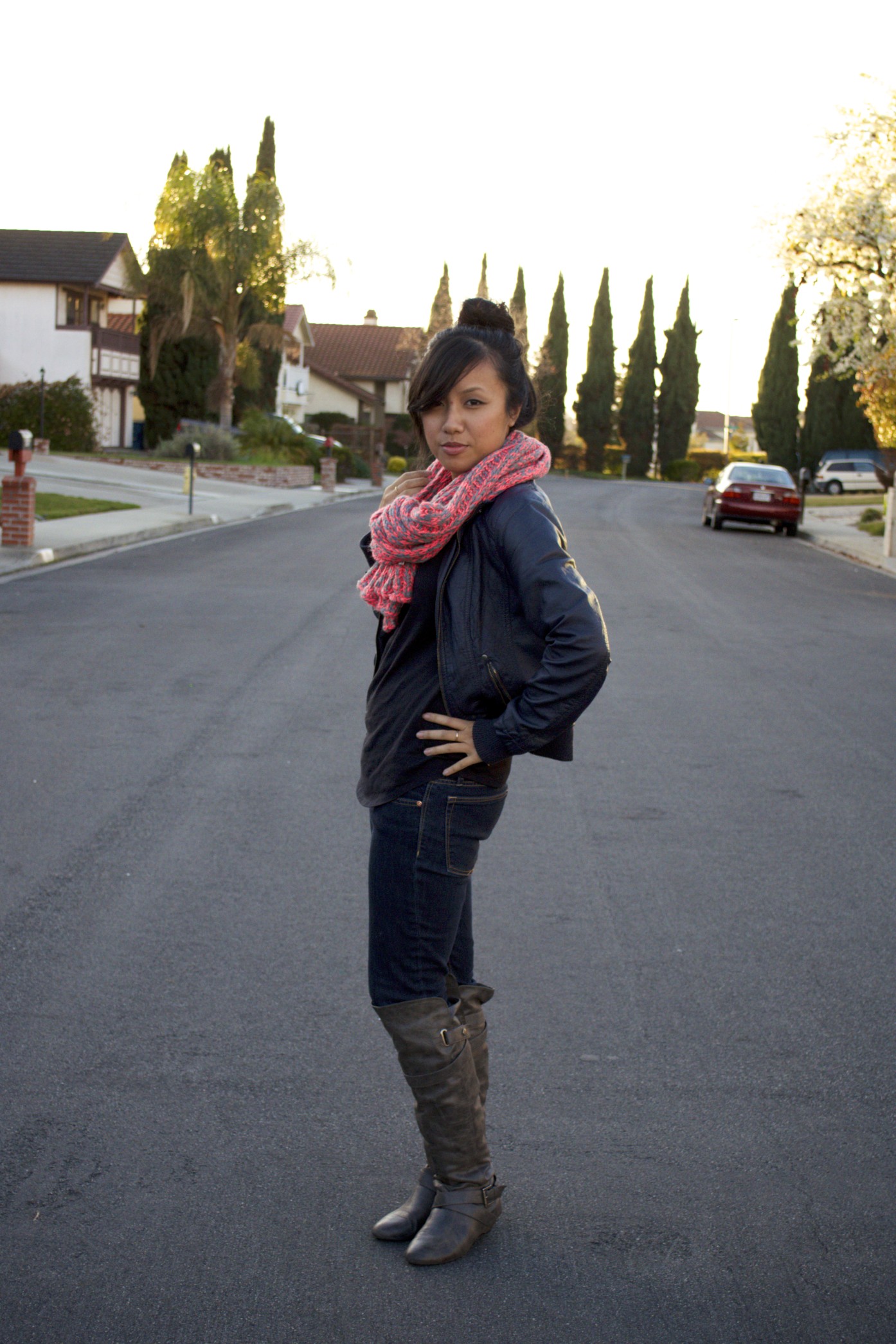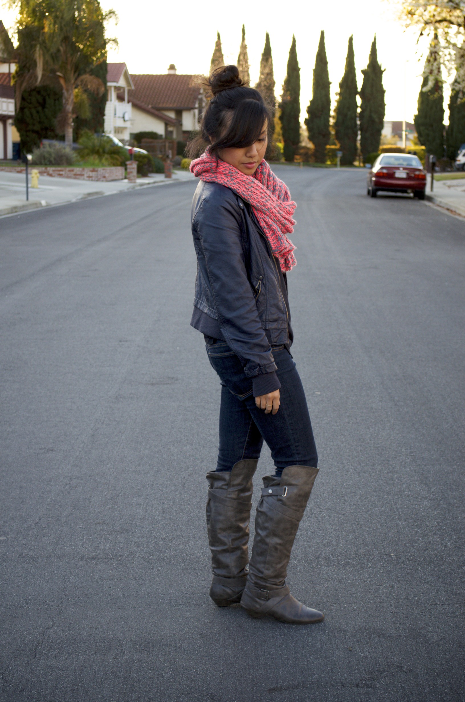 I was a little bit worried when I received this scarf as a Christmas present. The pink was brighter than I was used to, so I decided to make it the ONLY color I was wearing today to balance it out. I think it worked. What do you think?