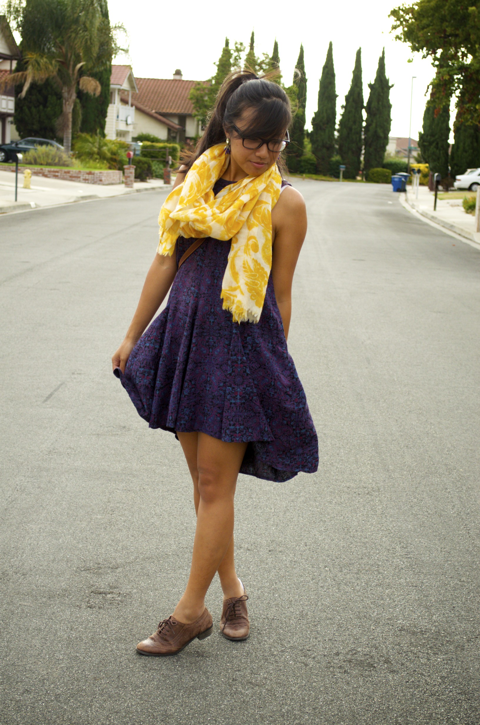 For some reason the weather here in the Bay Area has taken an odd turn — gray skies and less sun. These gray skies do not help my itching anticipation for fall at all. Remember this dress that I wore this past fall/winter? Well, I decided to take it out again but added a colorful scarf to brighten it up a bit and make it season appropriate. My shoes on the other hand…sorry, I couldn’t help but break these out.